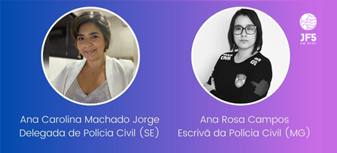 O evento conta com a participação da delegada de Polícia Civil Ana Carolina Machado Jorge, diretora de Proteção e Combate à Violência contra as Mulheres da Secretaria Especial de Política para as Mulheres, especialista em Ciências Criminais e mestranda em Direitos Humanos; e da escrivã da Polícia Civil de Minas Gerais Ana Rosa Campos, graduada em Direito, especialista em Processo Penal e mestranda em Segurança Pública.