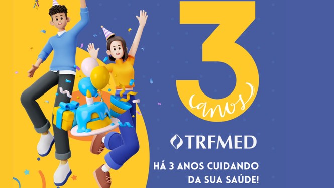 Para celebrar os três anos de atividades, o TRFMED concedeu gratuidade na mensalidade de dezembro/23, suspendeu a cobrança de coparticipação para consultas e exames até o final do ano e lançou a terceira edição do Programa Zero Carência.