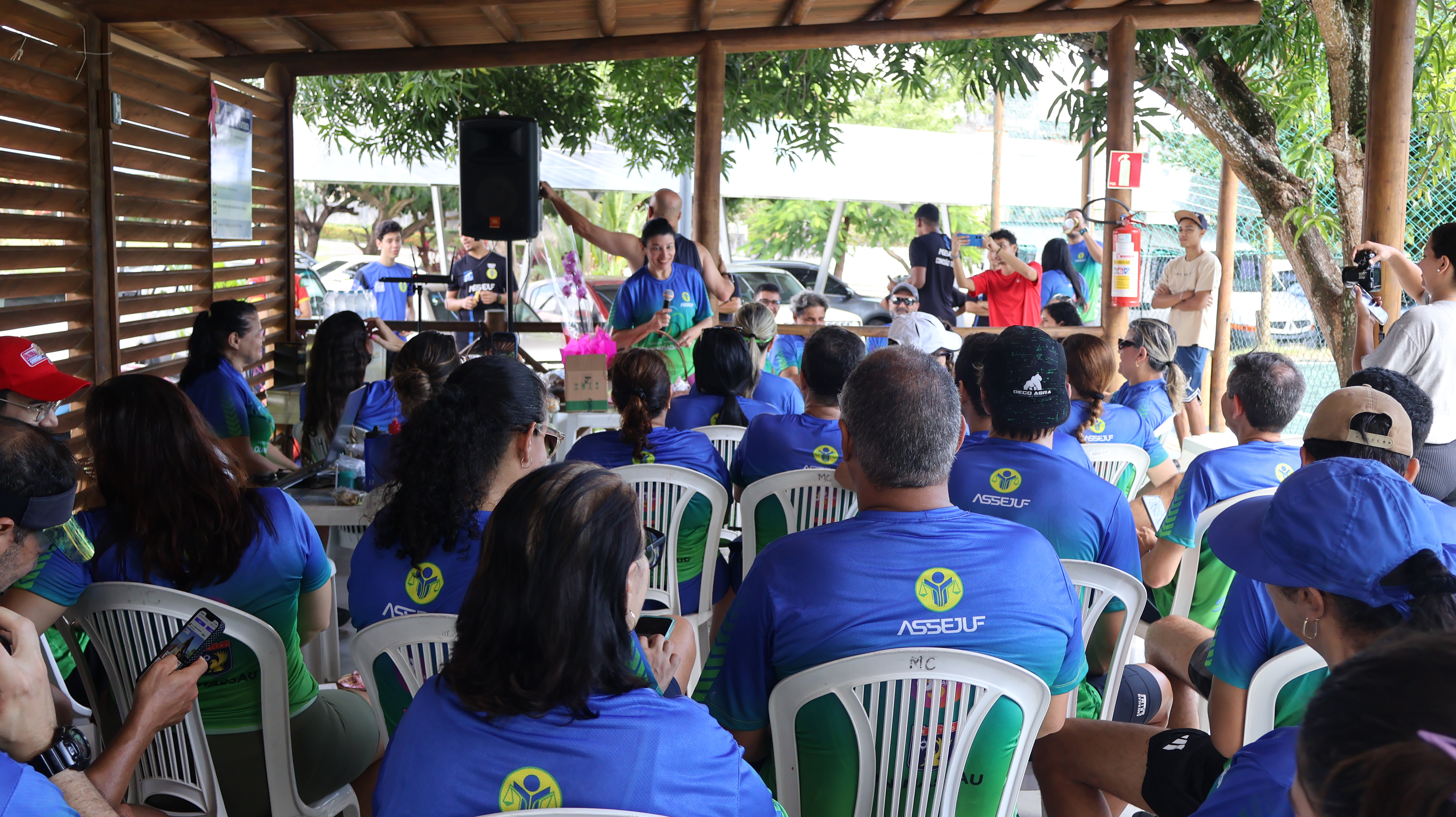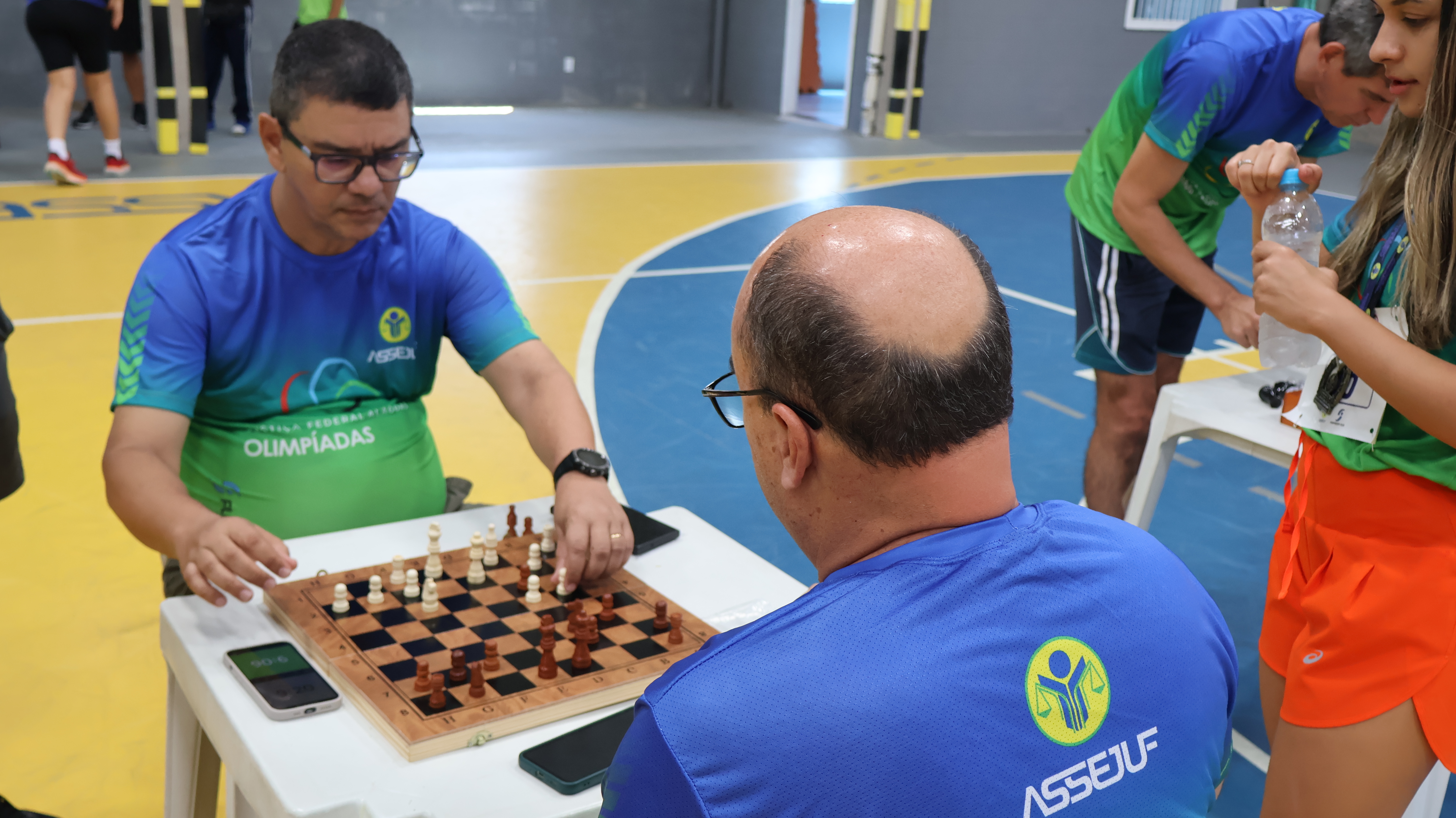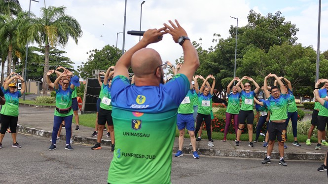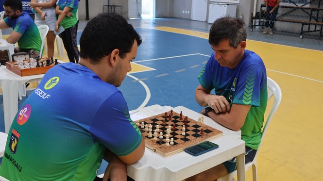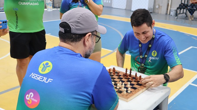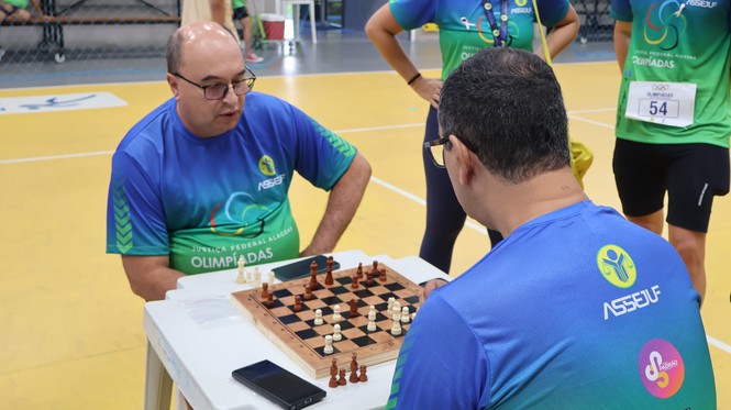 A manhã do sábado, 25, foi de muita animação e disposição para participar de atividades esportivas no primeiro dia de atividades da Semana do Servidor e da Servidora da Justiça Federal em Alagoas (JFAL) de 2025. Servidores e estagiários sentiram o chamado e se encontraram na área da Associação dos Servidores (Assejuf) para uma programação especial de prática de esportes e jogos de mesa. Os atletas da JFAL começaram as atividades bem cedo, às 6h30, com corrida, e também participaram de torneios de dominó, tênis de mesa e xadrez. A tarde foi reservada para partidas de futebol society.