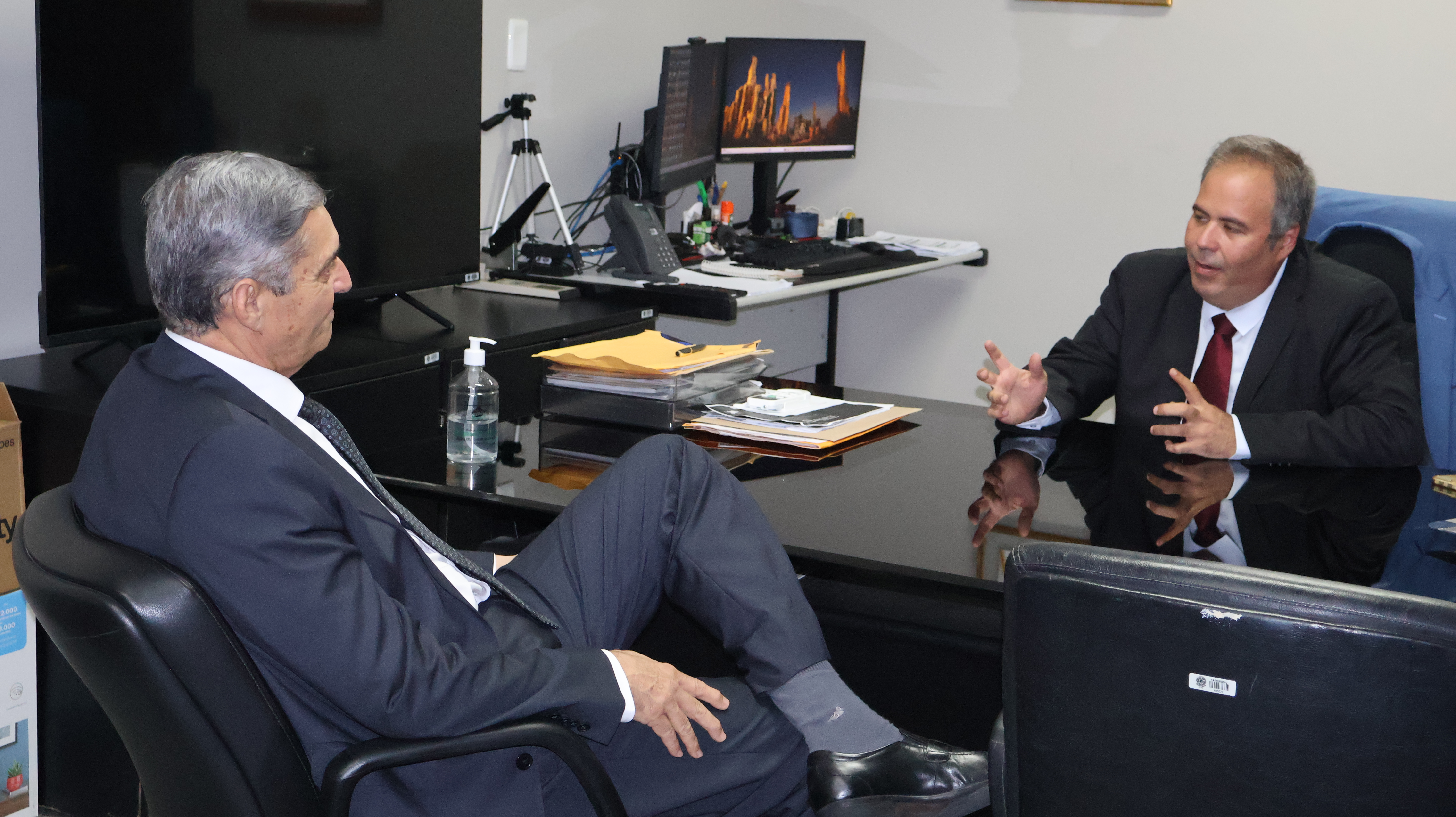 Diretor do TRT (terno cinza) realizou visita de cortesia ao diretor da Secad