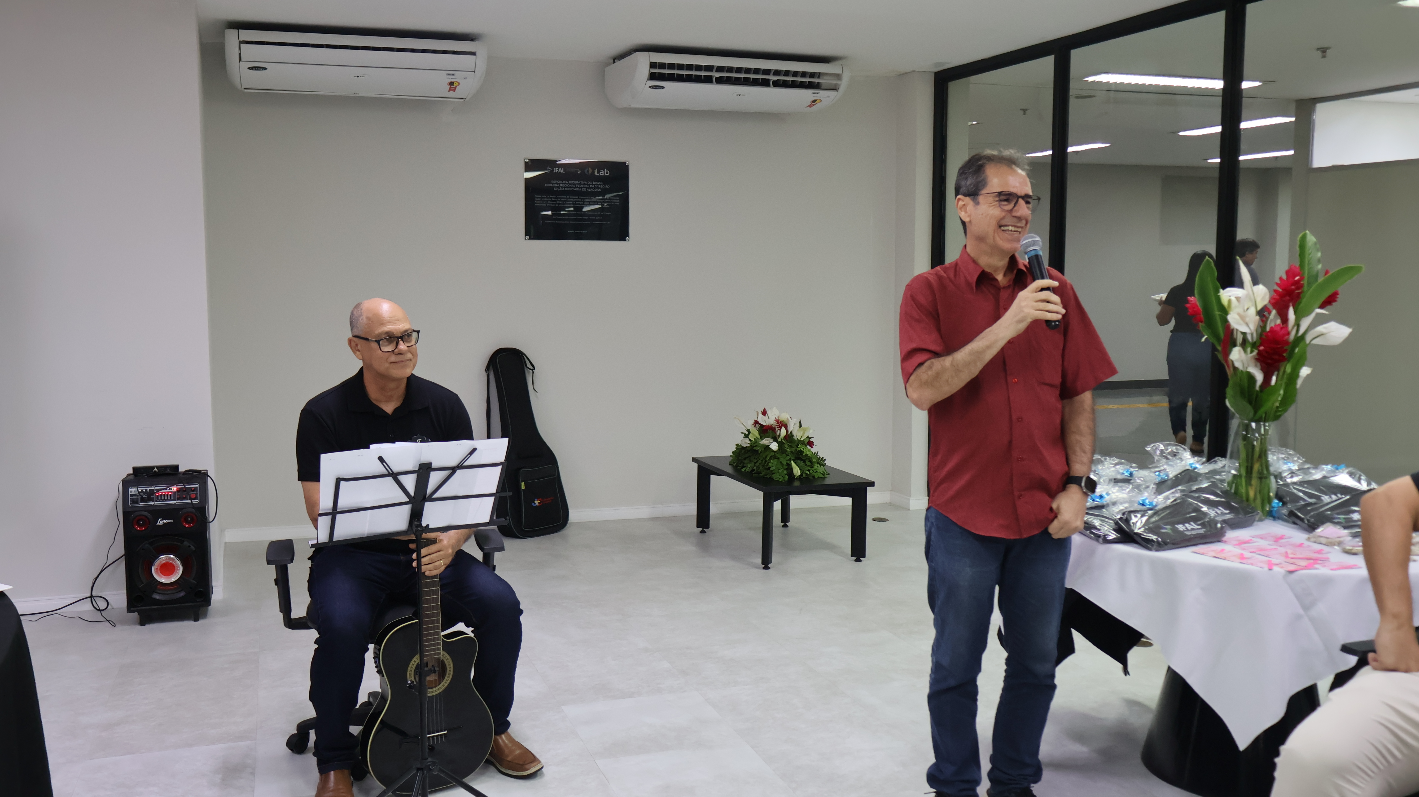 A Semana do Servidor da Justiça Federal em Alagoas (JFAL) chega ao fim com o clima de nostalgia e descontração. Na tarde desta quarta-feira, 29, servidores aposentados foram convidados para o encontro anual, no qual puderam realizar recadastro de atualização de dados pessoais, e desfrutar da companhia dos antigos colegas de trabalho. A abertura do momento, realizado no Laboratório de Inovação da JFAL (iLab) foi conduzida pelos servidores Paulo Falcão e Augusto Amorim, e contou também com a participação dos servidores aposentados Alberto Amâncio e Sérgio Borges, que animaram a tarde com música e lembranças de situações marcantes vividas na JFAL.