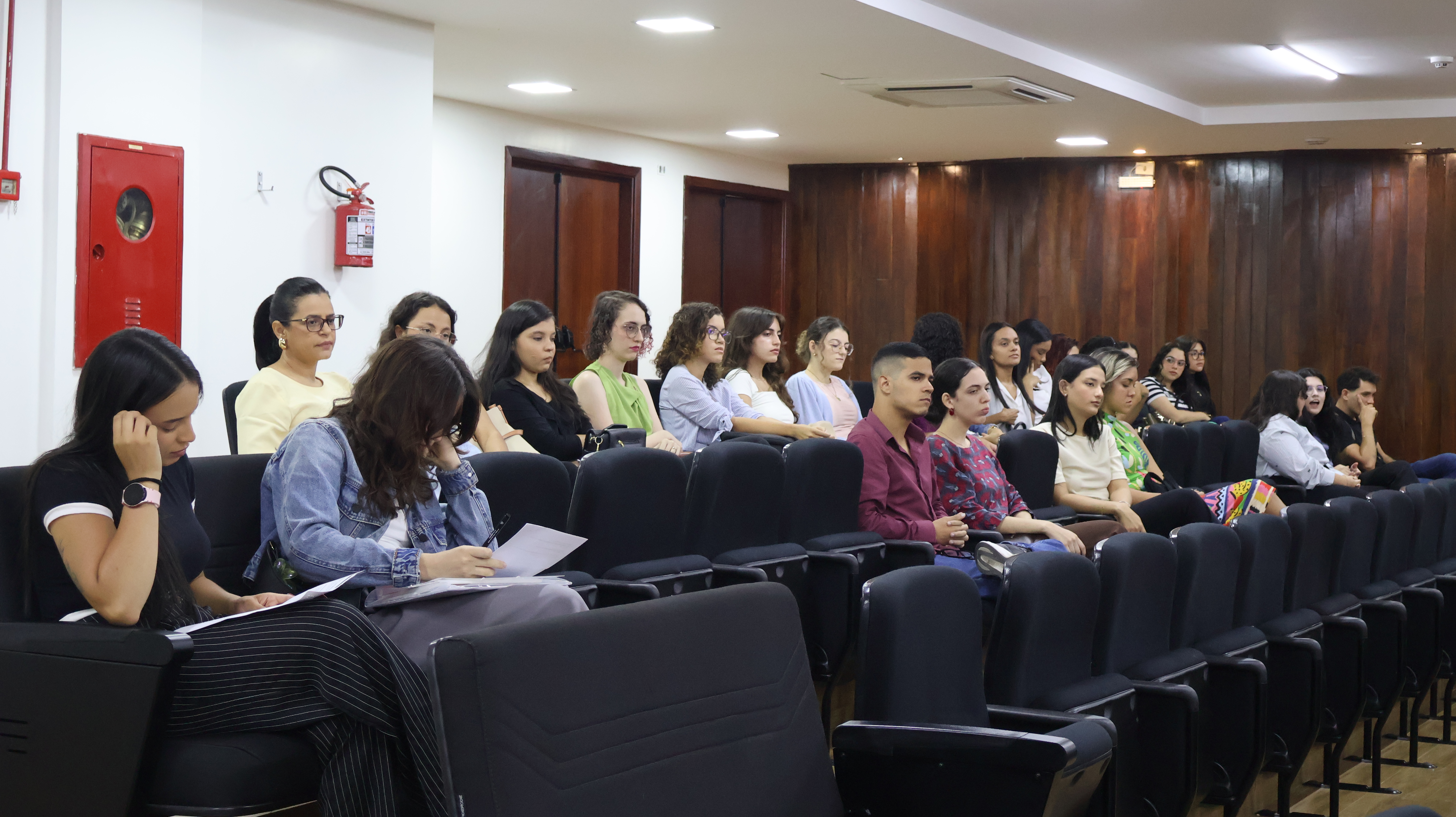 Estudantes de Psicologia de diversas instituições de ensino estiveram presentes, na tarde desta quinta-feira, 30, no auditório da Justiça Federal em Alagoas (JFAL), para realização da segunda e última fase do processo seletivo para estágio na instituição. Dos 26 aprovados na primeira etapa, 25 compareceram às entrevistas conduzidas pela psicóloga Vilma Victal, e pela coordenadora do setor de Qualidade de Vida da JFAL, Carolinne Rodrigues. Na ocasião, os candidatos foram indagados sobre questões pessoais e profissionais que envolvem Psicologia e saúde.