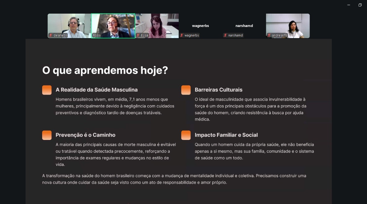 Apenas 31% dos homens, no Brasil, fazem seu check-up anual de saúde. Cerca de 45% buscam atendimento médico apenas quando sentem alguma dor, como indicativo de algum problema de saúde. E 89% do público masculino apresentam altos índices de estresse. Estes foram alguns dos números apresentados nesta segunda-feira pelo médico Roberto Rossi Neto aos servidores da Justiça Federal em Alagoas (JFAL), durante live promovida pela plataforma Zoom, como atividade da programação do Novembro Azul.